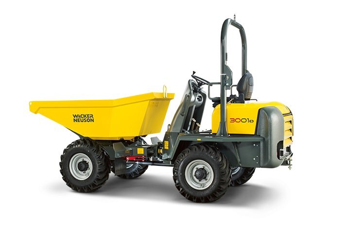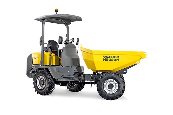 This mid size dumper features a 6,600 lb (3-metric ton) payload capacity, power swivel material handling and hydrostatic permanent four wheel drive as standard. The hydrostatic drive system offers user-friendly controls, eliminating the need to change gears. The 3001 offers superior performance, the drive system automatically provides torque when and where it is needed. With no clutch to wear or gears to grind, hydrostatic drive eliminates the high parts and labor costs associated with replacing these components. ROPS and heated cab versions are available.