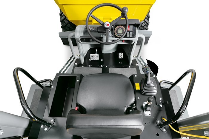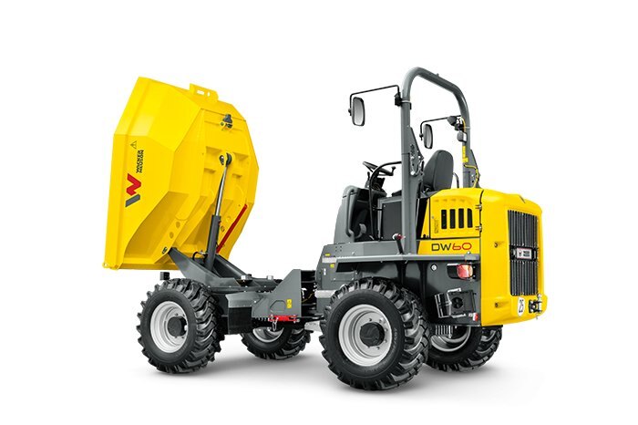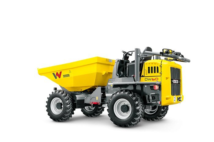 The DW60 combines the power of a hydrostatic transmission Tier 4 Final Perkins engine with an industry leading, heavy duty design. With massive, impact-resistant box sections, this power swivel dumper offers high performance and a bucket engineered for durability. The DW60 is well balanced and easily moves its rated payload across the varying terrains of a job site. Full-time four-wheel drive ensures optimum maneuverability in difficult conditions.
