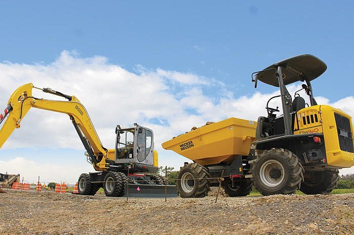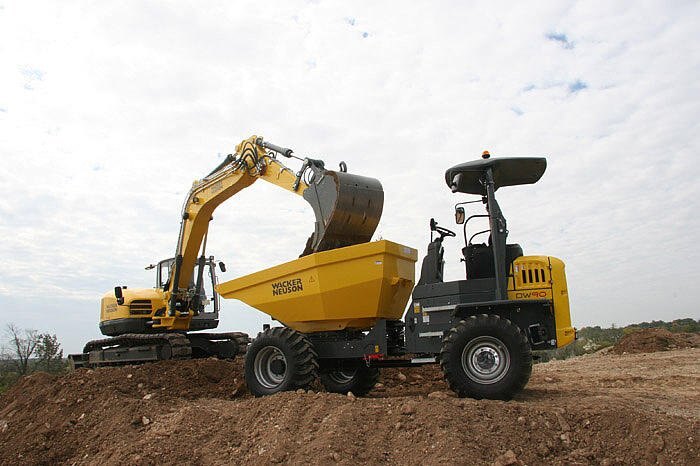 The DW90 is a versatile bulk material mover offering articulated hydrostatic 4-wheel drive designed to carry full payloads across rough terrain, muddy conditions and steep hills. Dumpers have a smaller footprint than traditional dump trucks and can easily maneuver around confined and busy job sites, moving dirt faster and significantly improving cycle times. The DW90 can carry up to 5.6 cubic yards of dirt and is an excellent material mover partner for larger excavators.