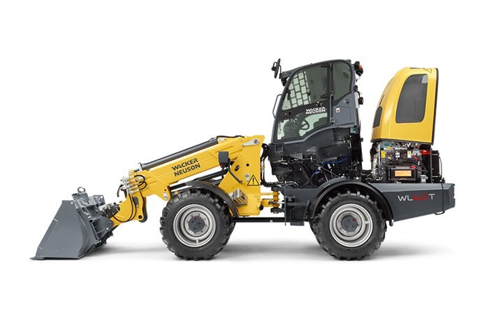 The WL60T telescopic wheel loader is equipped with a 102 HP Tier 4 Final turbo-charged Perkins diesel engine delivering best-in-class power and performance, and with the telescopic boom additional height, added versatility and greater production is achieved. The WL60T features a telescopic arm that delivers 16’ 8” hinge pin height to easily manage high sided trucks and material containers. The articulated wheel loader provides stable and maneuverable operation especially in tight spaces.