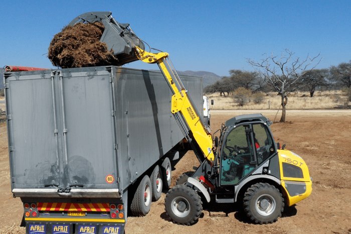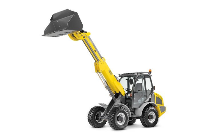 The 750T wheel loader features a telescopic boom for additional height, added versatility and greater production. This all wheel steer model offers excellent maneuverability, overall machine stability and the telescopic boom provides extra reach for stacking and dumping. This all-purpose wheel loader features a long wheelbase for smooth driving and easy handling even across rough terrain.