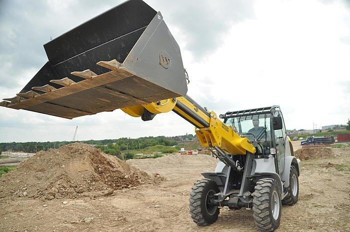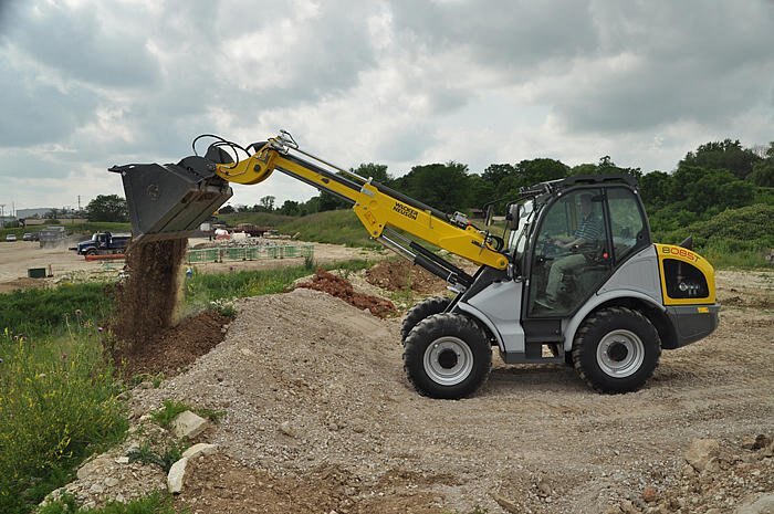 The 8085T telescopic all wheel steer wheel loader provides versatility when and where you need it most. This wheel loader offers a telescopic boom providing additional reach for stacking and dumping and excellent maneuverability with three steering modes. This all purpose wheel loader features a long wheelbase for smooth driving and easy handling even across rough terrain.