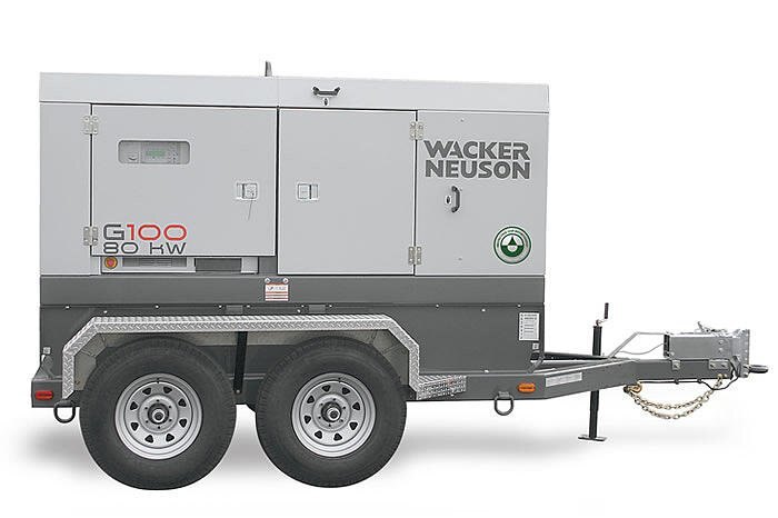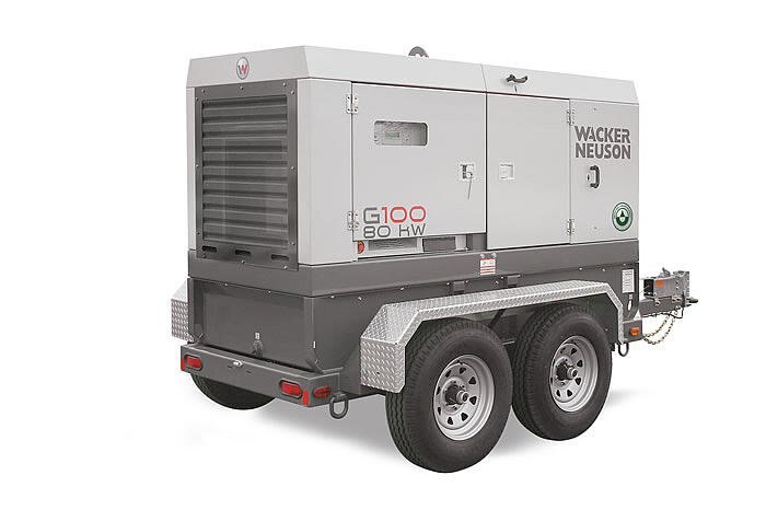 The G100 is a durable, sound attenuated diesel generator that provides mobile prime power for larger construction, commercial, industrial, special event and emergency management applications where quiet, reliable power is needed. The digital controller monitors and protects the generator and engine. The standard environmentally friendly features include a 115% fluid containment, crankcase oil vapor recovery system, no mess oil and radiator drain hoses and fast fuel fill system that minimizes fuel spill potential.