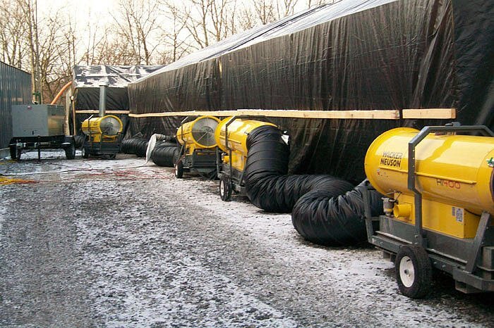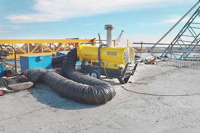 HI400HD portable indirect fired air heaters produce clean, dry, healthy heat offering an ideal environment for a variety of construction, residential and restoration applications without the use of an open flame, combustion carbons or water. Available in Diesel or Natural Gas/Propane, the HI400HD can handle various heating and drying applications at over 85% efficiency due to dedicated 2nd blower for combustion; one of the highest in the industry! Large pneumatic tires mean easy positioning on jobsites. The HI400HD is CSA approved.