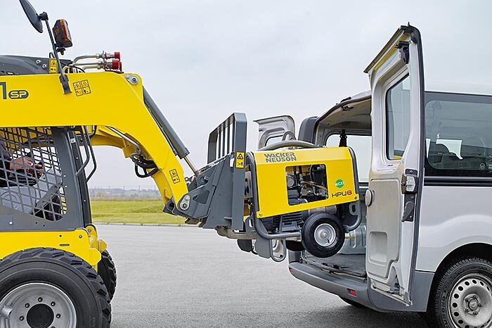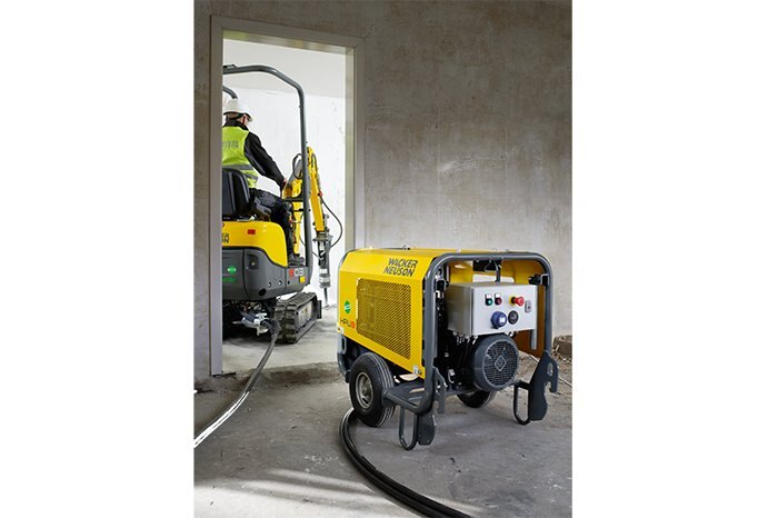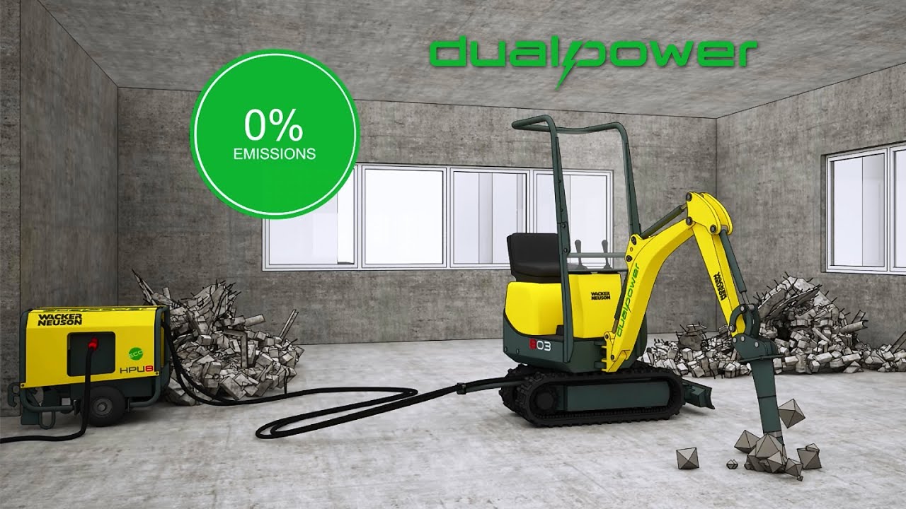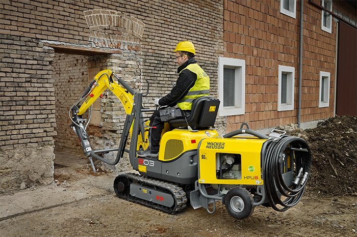 Wacker Neuson dual power is the innovative solution for an emission-free auxiliary drive. In addition to the integrated diesel engine, the electro-hydraulic unit HPU8 can be connected to the 803 compact excavator if necessary. The HPU8 is technically tailor-made to the requirements of the excavator 803. In this way, the excavator can be operated electrically and emission-free if necessary. The handling is easy: The generator is connected to the undercarriage via Plug & Play – done.