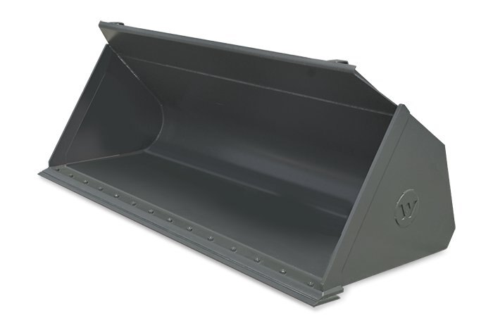General purpose wheel loader bucket with bolt on cutting edge and universal attachment plate. Versatile bucket to scoop, move and level all types of dirt and stone material. |