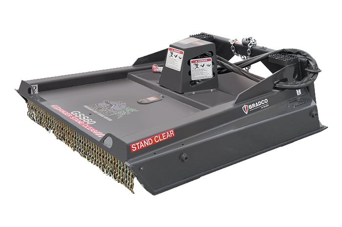 Bradco's standard duty brush cutter designed to clear light to medium density brush and hardwoods. The retractable forward shield is able to expose cutting edge of blades while protecting operator from flying debris. |