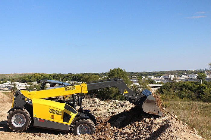 The TH522 ground-engaging telehandler is designed to meet the digging demands of a wheel loader, the versatility of a skid steer and the lifting performance of a telehandler. With the hydraulically operated universal attachment plate, operating a wide variety of skid steer attachments is easy. Multiple load settings increase efficiency on the job site while the spacious operator station is designed to minimize fatigue on long days.