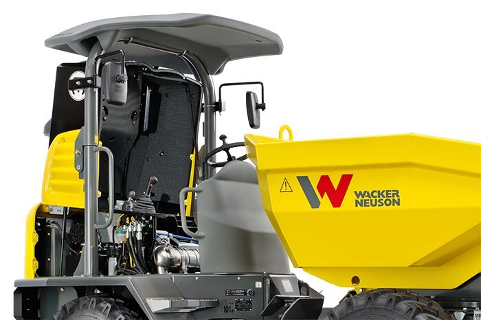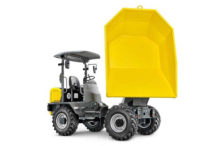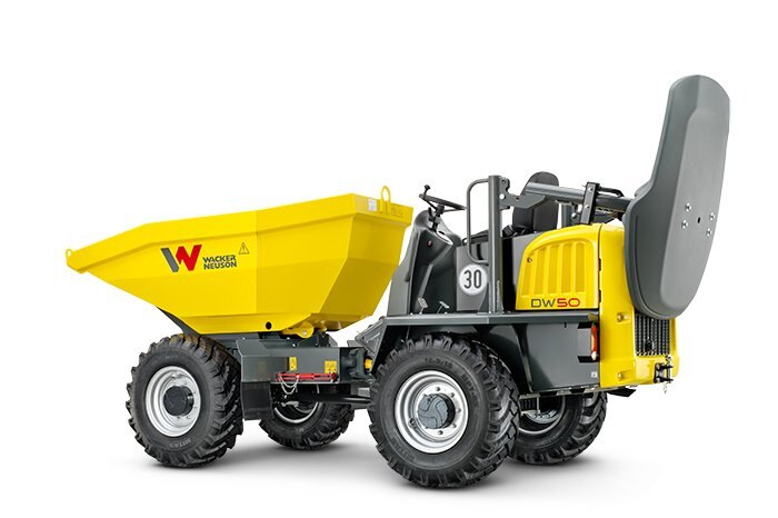 The DW50 dumper combines a compact design with powerful engine and hydrostatic all-wheel drive making it capable of hauling more in less time, reducing cycle times and increasing efficiency. This 5-ton class dumper offers a payload of 11,023 lbs. and driving speed up to 17.4 mph, plus its ability to travel across rough terrain makes it extremely versatile for moving all types of material on any job site. The unique compact design along with the powerful 74.2 hp engine allows the DW50 to access confined areas but provide the power needed to move heavier loads.