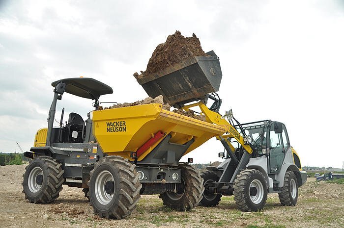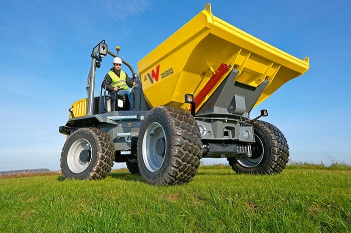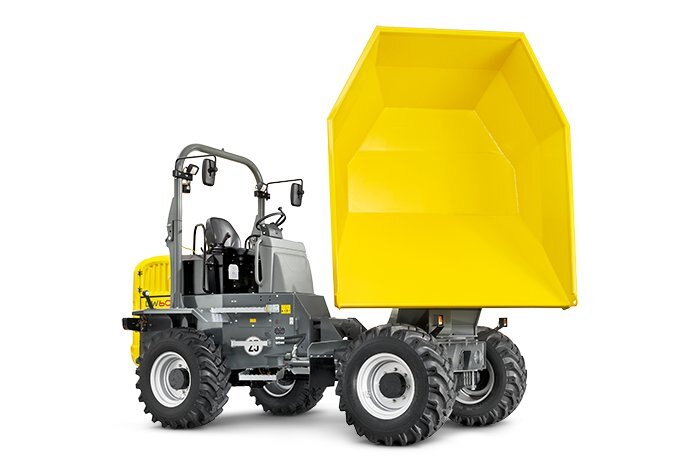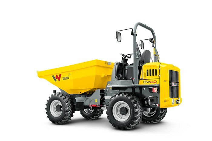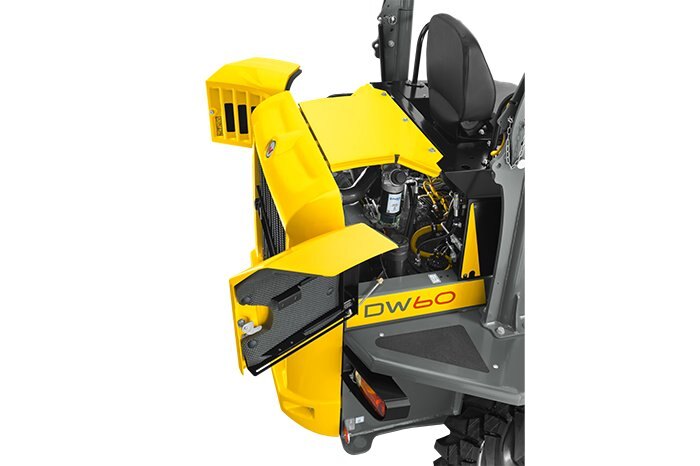 The DW60 combines the power of a hydrostatic transmission Tier 4 Final Perkins engine with an industry leading, heavy duty design. With massive, impact-resistant box sections, this power swivel dumper offers high performance and a bucket engineered for durability. The DW60 is well balanced and easily moves its rated payload across the varying terrains of a job site. Full-time four-wheel drive ensures optimum maneuverability in difficult conditions.