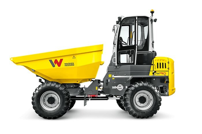 The DW90 is a versatile bulk material mover offering articulated hydrostatic 4-wheel drive designed to carry full payloads across rough terrain, muddy conditions and steep hills. Dumpers have a smaller footprint than traditional dump trucks and can easily maneuver around confined and busy job sites, moving dirt faster and significantly improving cycle times. The DW90 can carry up to 5.6 cubic yards of dirt and is an excellent material mover partner for larger excavators.