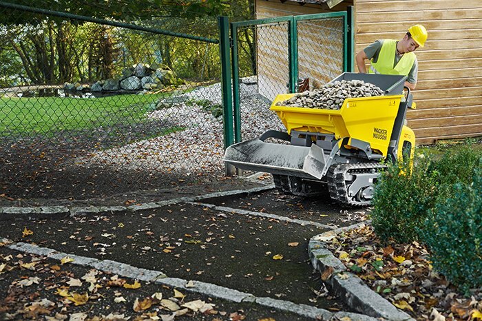 Track dumpers are an excellent material handling solution for smaller jobs that need the advantage of a tracked machine. Because of the compact design and ability to travel across rough terrain and over curbs, they are ideal for confined spaces, fitting through narrow gates and doorways.