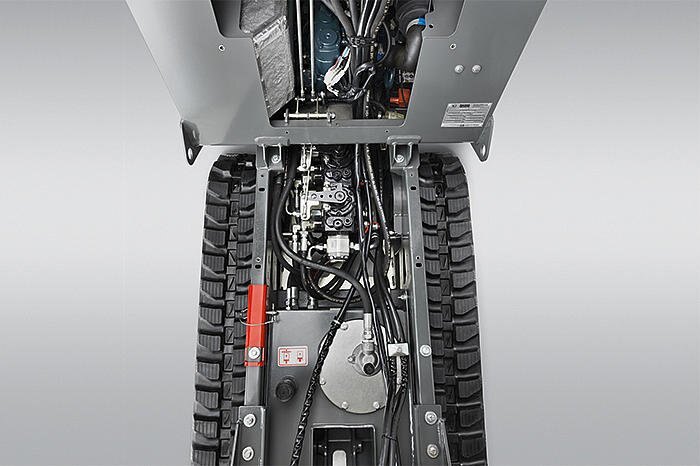 The rubber tracks and the optimum weight distribution reduce the ground pressure to prevent damage to sensitive surfaces and provides added stability