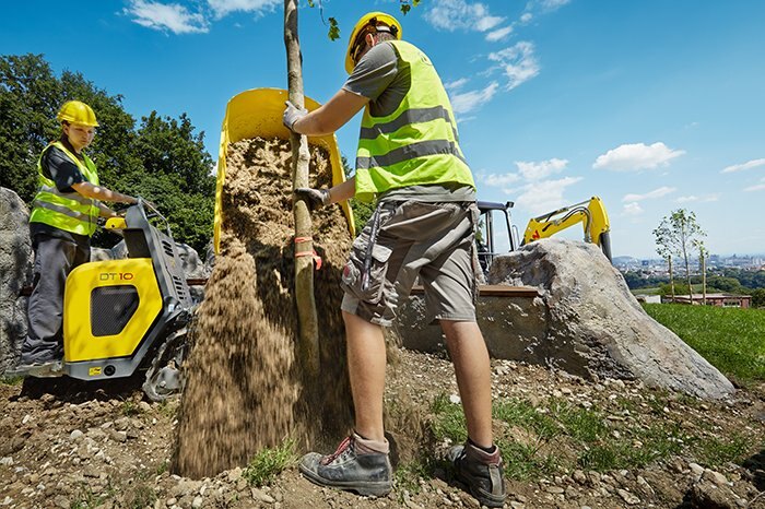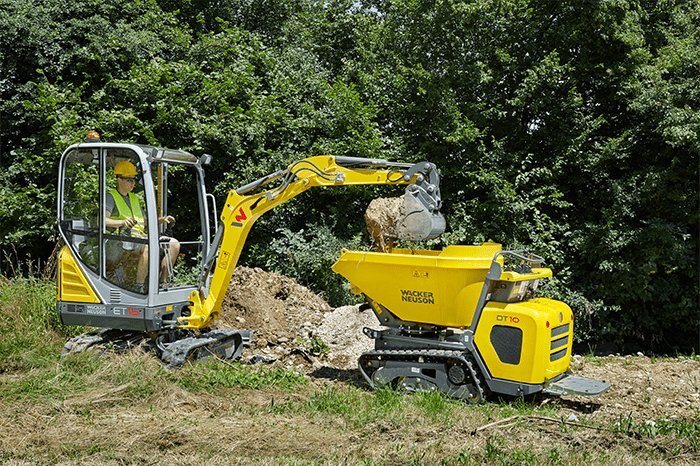 Wacker Neuson's DT10 track dumper is an excellent material handling solution for smaller jobs that need the advantages of a tracked machine. The compact machine is designed for smooth travel while maneuvering across rough terrain and over curbs. The DT10 is designed for high performance and lower cost of ownership.