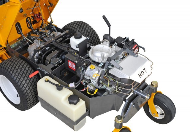 | 18 hp, Briggs & Stratton Vanguard twin-cylinder engine, air-cooled Tilt-up body completely exposes drive train Remote oversized air cleaner for engine 4 gal (15.14 liter) fuel tank 8 mph (13 kph) ground speed |