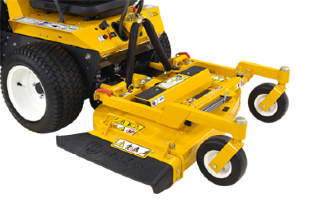 | The compact 36-inch side discharge deck is ideal for cutting finished turf with narrow spaces. The S36 features an extended front housing to increase overall deck capacity and improve quality of cut in difficult conditions. Like all Walker decks, the S36 tilts-up for easy maintenance and cleaning. The rubber discharge chute provides a safe and functional guard for the S36, and easily fold up for fitting through narrow gates. |