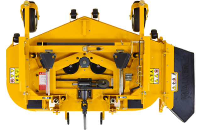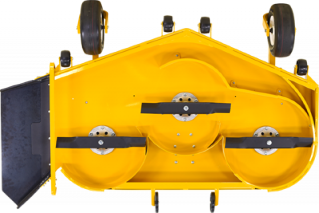 | H-series tractor operators looking to do high production mowing in both finished and rough conditions, will like the 60-inch discharge deck. The three-blade V design is belt-driven and features an integrated footrest. |
