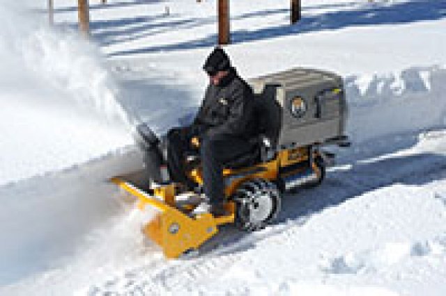The A11 Snowblower features a powerful, high speed, clog-resistant auger, that throws snow up to 20 feet even when working in wet, slushy conditions. The discharge chute rotates 180° degrees and is easily adjustable from the operator seat. A manual lift lever lifts and lowers the A11 into place for blowing snow or for travel and loading.
