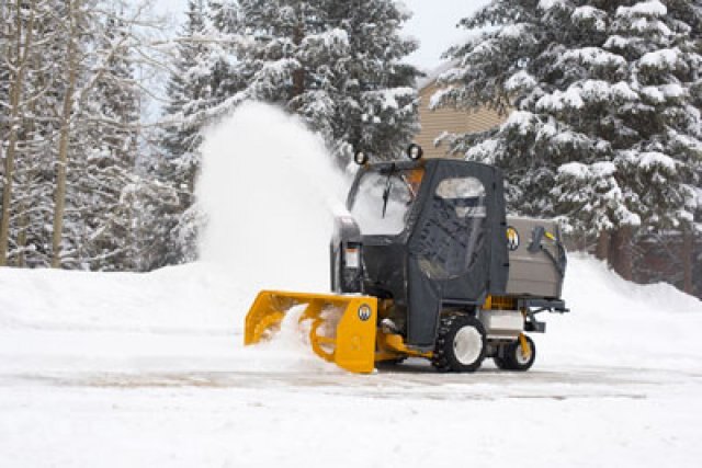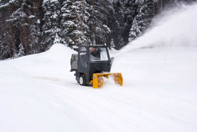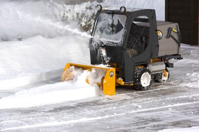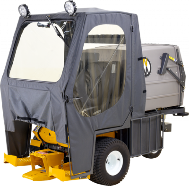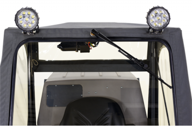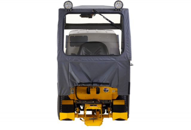 The Operator Soft Cab is designed to shield the operator from winter weather when using the 42" Snow Blower, 47" Rotary Broom and 48" Dozer Blade. The cab features a hinged door for operator entry, glass windshield, electric windshield wiper and LED headlights.
