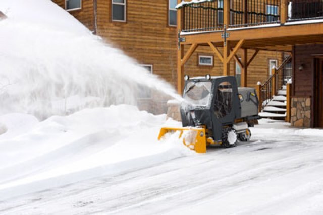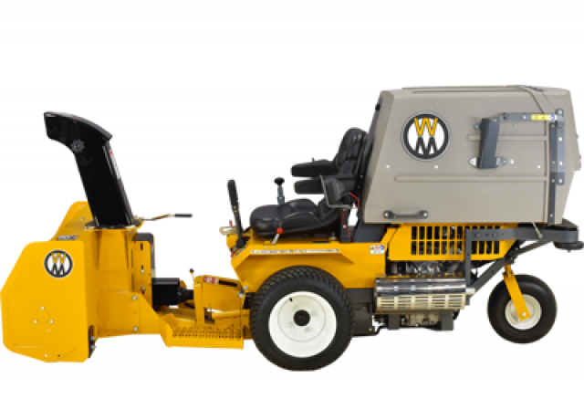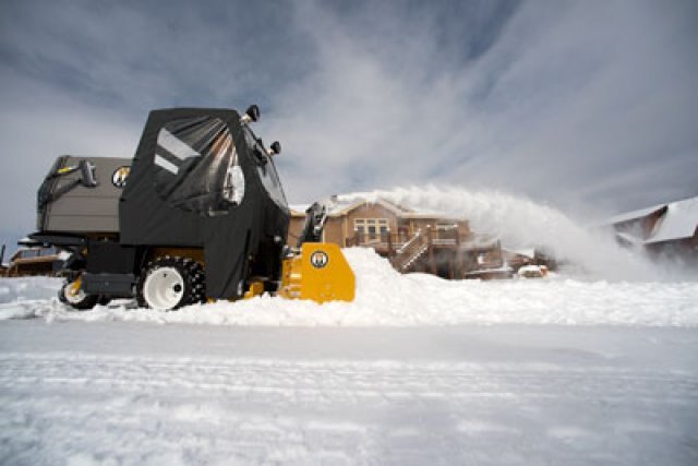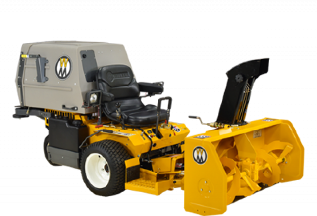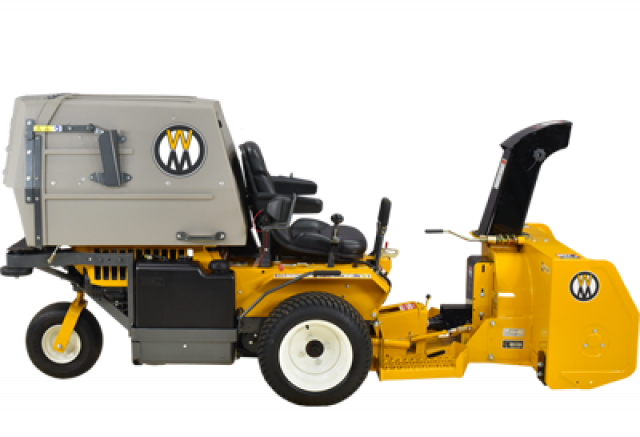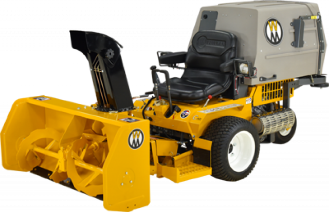| A powerful 42" two-stage snowblower is available for Model C, Model D and Model T tractors. Quick, easy operation is enhanced by a power lift and includes the ability to adjust the discharge spout 180° from the operator seat to throw snow up to 40 feet. The optional Operator Soft Cab is recommended to offer protection from the elements. The two-stage snowblower is one of Walker's most popular implements and extend the earning potential of lawn mowing companies to include the winter months. |