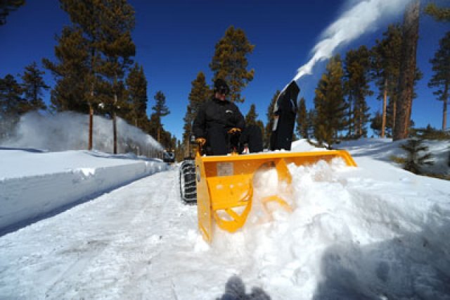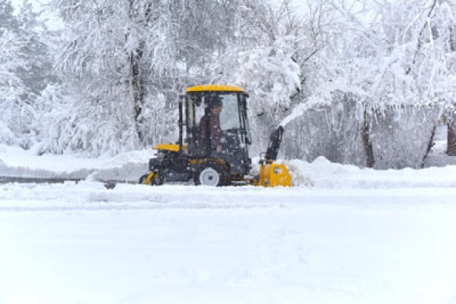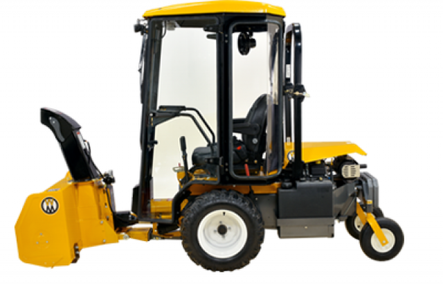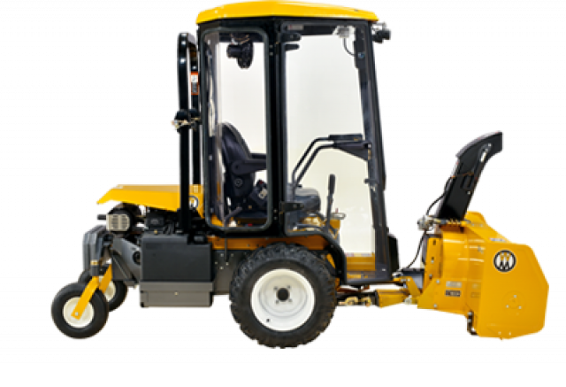 | Stay busy in the snow when attaching the 50 inch two-stage snowblower. This powerful, easy-to-operate implement uses a power lift controlled by a toggle switch on the Forward Speed control. The direction of the discharge spout can be adjusted 180° from the seat, and the trajectory of the top of the discharge spout can be adjusted to throw snow up to 40 feet. A replaceable, hardened steel scraper provides good clearing action. |