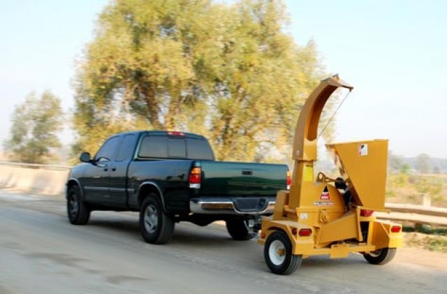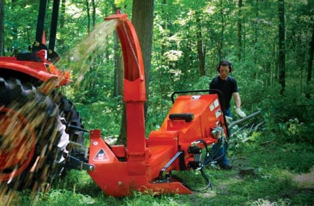 The self-feed hopper is designed to angle the brush against the rotor and blades, pulling the branches into the chipper.