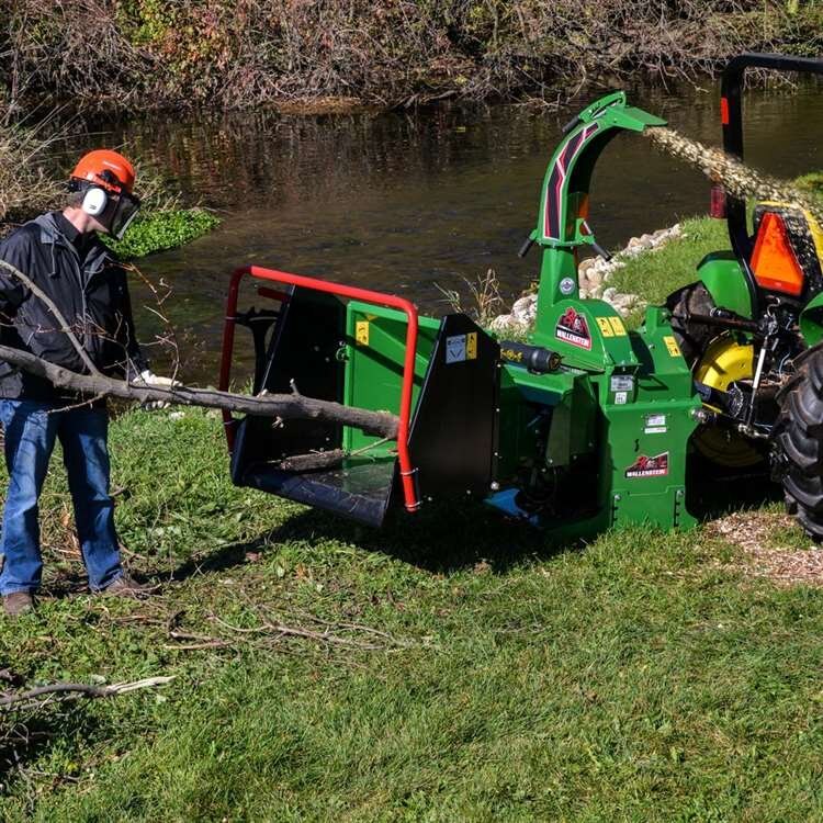 With a PTO powered rotor and hydraulic feed hopper, branches, limbs and brush up to 5" in diameter are control fed for continuous chipping at maximum capacity.