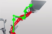 The angled loading arm is designed to be particularly sturdy and torsion resistant. At Weidemann, the kinematics are adjusted to the size of the machine - this ensures optimal balances of power for every machine. The P-Z kinematics is a combination of P-kinematics and Z-kinematics. It allows significant lifting and shearing forces and has a finely co-ordinated parallel motion in the process. |