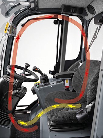 The working environment in the cabin is excellent, thanks to an efficiently working heating and ventilation system with a fan, fresh air filter and well-placed air nozzles. With the comfort cab, air conditioning is available as an option. |
