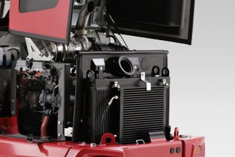 The driver’s seat can be removed and the engine hood can be opened backward widely. This makes the engine, hydraulic system and electrical system easily accessible for our LP models. |
