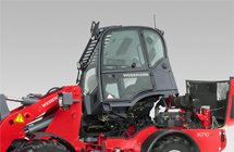The spacious cabin meets the current European machine directive (2006/42/EC) according to roll-over protective structure and FOPS protection and offers a great deal of headroom and freedom of movement. The complete glazing provides the operator with an excellent overview of the attachment and the entire working area. |