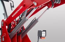 Weidemann always installs two lift cylinders in all Hoftrac and wheel loader models. This guarantees that the load distribution is always optimally transferred to the loading arm. In addition, the entire loading system gains stability. The size of the lift cylinder is adapted to the respective size of the machine. |