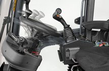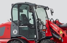 The spacious cabin meets the current European machine directive (2006/42/EC) according to ROPS and FOPS protection and offers a great deal of headroom and freedom of movement. Thanks to the complete glazing, the operator has an excellent overview of the attachments and the entire working area. |