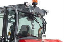The optionally available rooftop air-conditioning system provides a pleasant working climate inside the cabin when the outside temperatures are high. In addition, it offers a high airflow rating (cfm) and convinces with an optimised cooling performance. The operator's control for the control system and the air nozzles are located inside the roof area of the cab. |