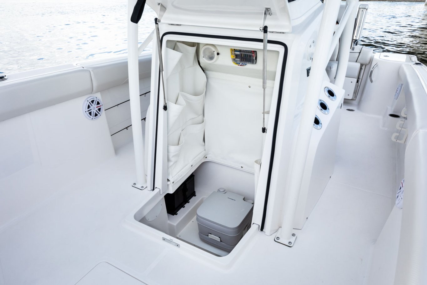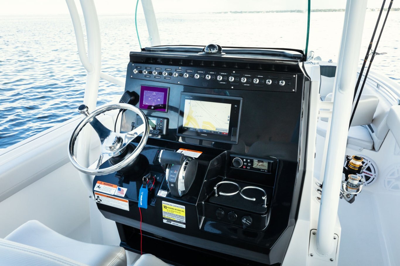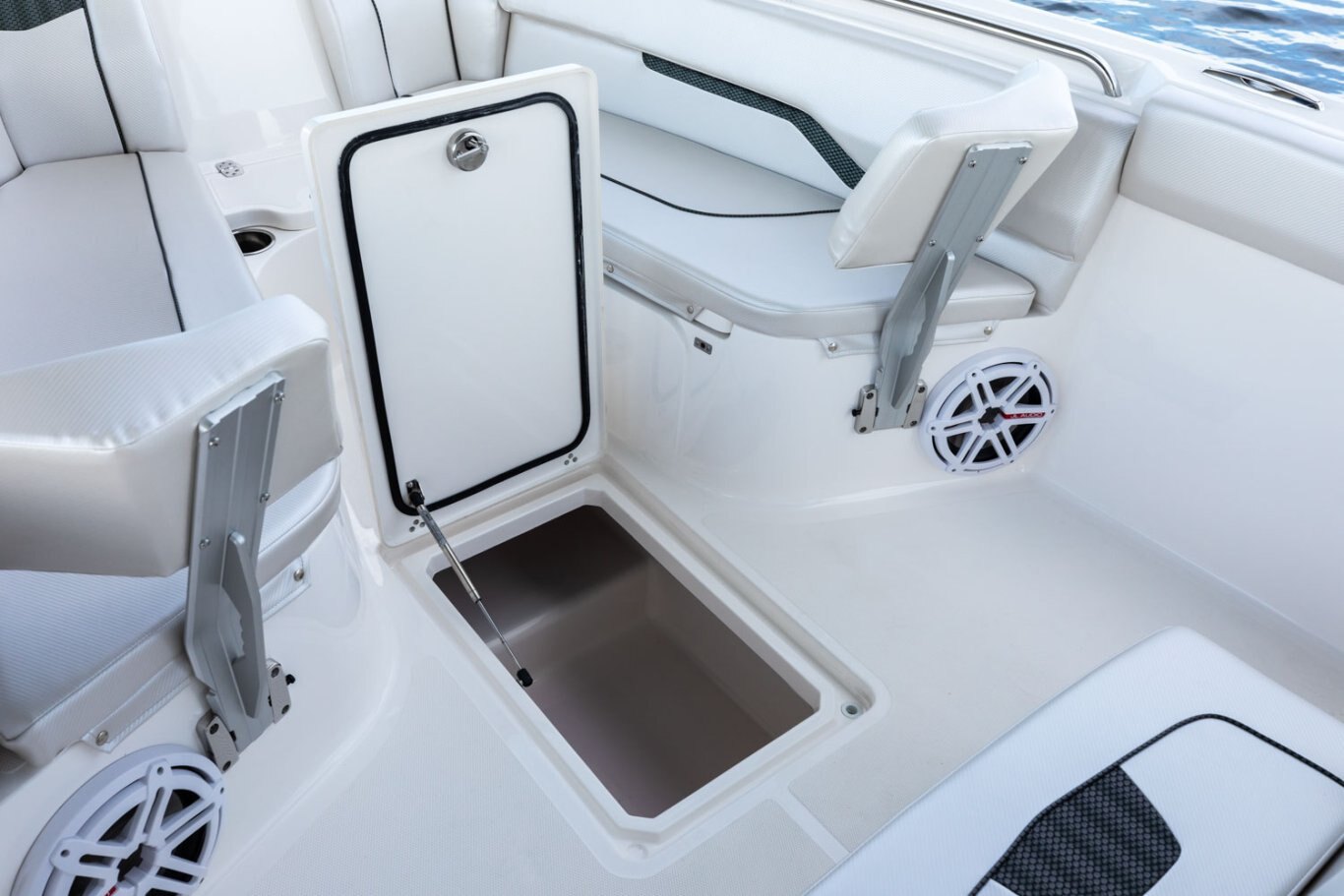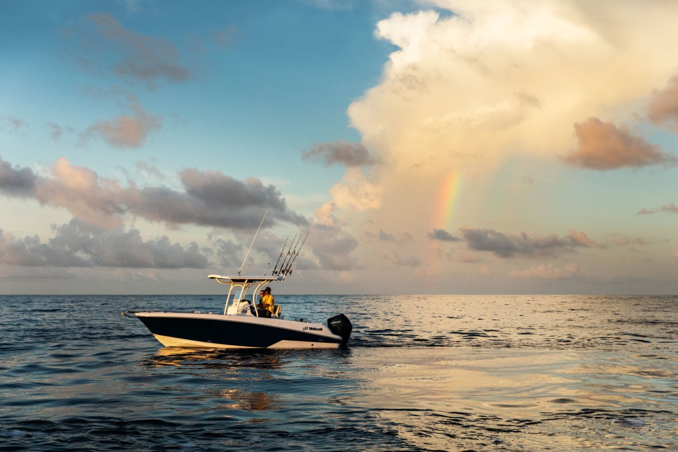 Whatever your passion: luxury fishing, family boating, or offshore cruising, the 242F embraces it all. Powered by single or dual applications, this 24'4" vessel delivers the length and muscle fishermen need when heading offshore—a textbook ride only possible through a high freeboard, deep hull, and an articulated bow flare.