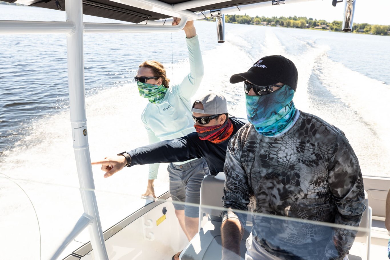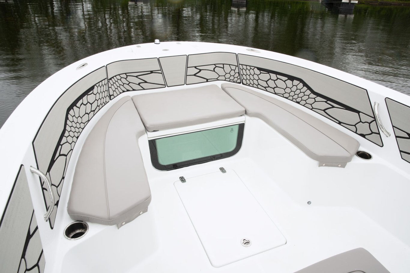 Smart Seating Helm seating flips aft for more space when lounging or soaking a line. |