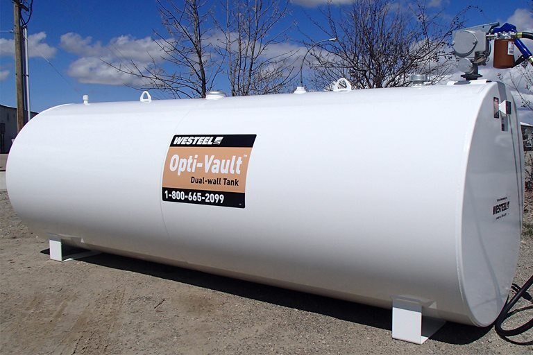 The Opti-Vault™ is the most affordable ULC listed dual wall tank made by Westeel. It is an economical and environmentally safe way to store flammable or combustible liquids in 500 and 1,000 gallon sizes. At Westeel we work with partners across a variety of industries to design and build fuel storage tanks that meet the unique combination of price and features of each industry. Through this process we've recognized that some users need a no-frills, code compliant, dual wall tank that is ULC listed, and free of leaks. The result of this demand is the Opti-Vault™. Westeel’s Opti-Vault™ Dual Wall Integral Contained Above Ground Storage Tanks are available in two sizes and can be packaged with regular duty skids and economical pump packages. |