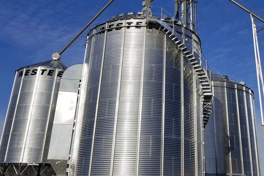 Raise your standards high, with EasyDryAGI Westeel EasyDry is an industry-leading overhead grain drying system. This approach to grain drying and storage is now even better thanks to innovations in technology, engineering, and manufacturing. Drying and storing your grain is now even easier than before. AGI Westeel's EasyDry bin system puts a grain dryer in the top of a grain bin—combining a drying bin, cooling bin, and storage bin all in one! As the grain dries, it is dumped into the storage area below. So, your drying system doubles as a storage bin as well! |