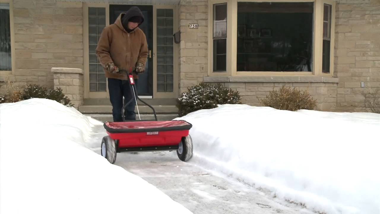 WB-160D Drop-Style Spreader The WB-160D Drop-Style Spreader is ideal for drop-spreading bagged bulk salt and bagged commercial ice-melt products, along walkways and other narrow areas.