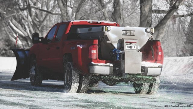 Minimize waste and maximize profits with the WESTERN® Striker™ stainless steel hopper spreader. A dual variable-speed control and an innovative chute design allow operators to easily control salt and sand spread. Ultra-durable and loaded with the latest in snow and ice control technology, the Striker hopper spreader helps you take your de-icing operation further.