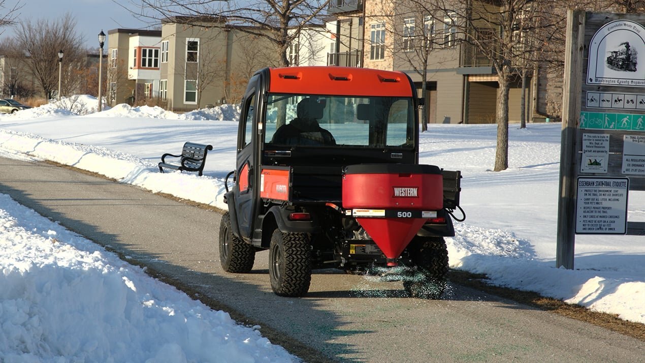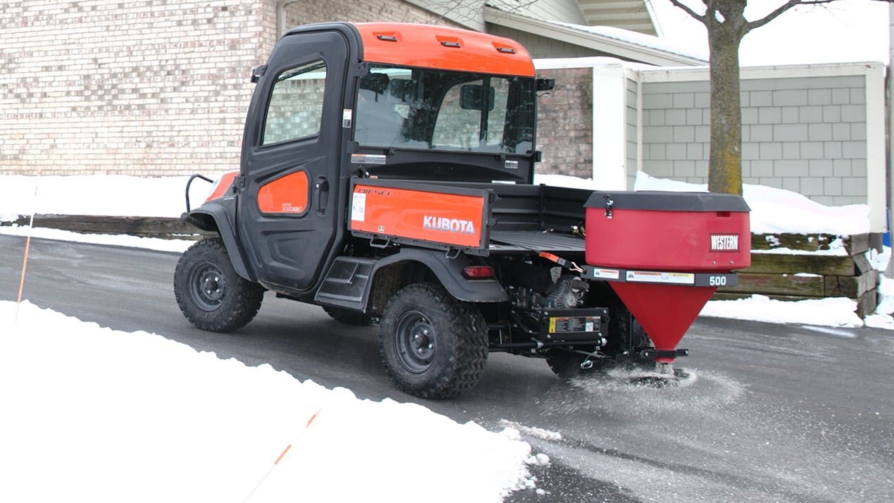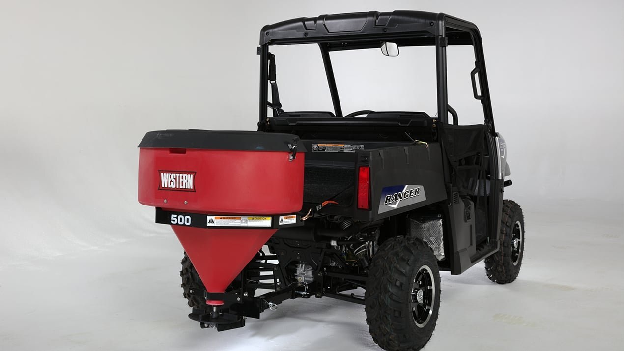 LOW PROFILE 500 UTV TAILGATE SPREADER OPERATOR-FRIENDLY VISIBILITY Ideal for treating sidewalks, driveways and small parking lots, the Low Profile 500 tailgate spreader offers everything you need in a light-duty spreader for your UTV. Operator-friendly and cost-effective, the Low Profile 500 is engineered to allow maximum visibility out the back of the UTV, while the simple design and rugged construction helps get the job done quickly, all from the comfort of your UTV. |