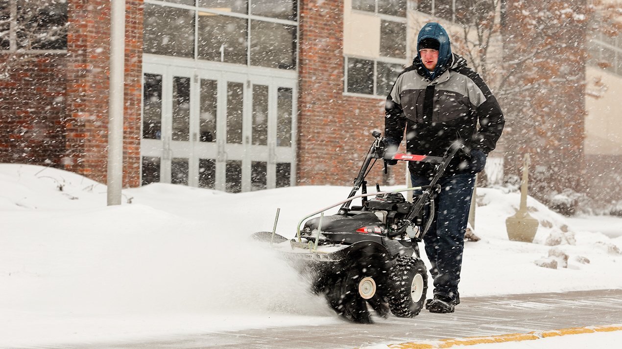 Quick-attach plow blade features wheels and floating design to move heavy or deep snow.
