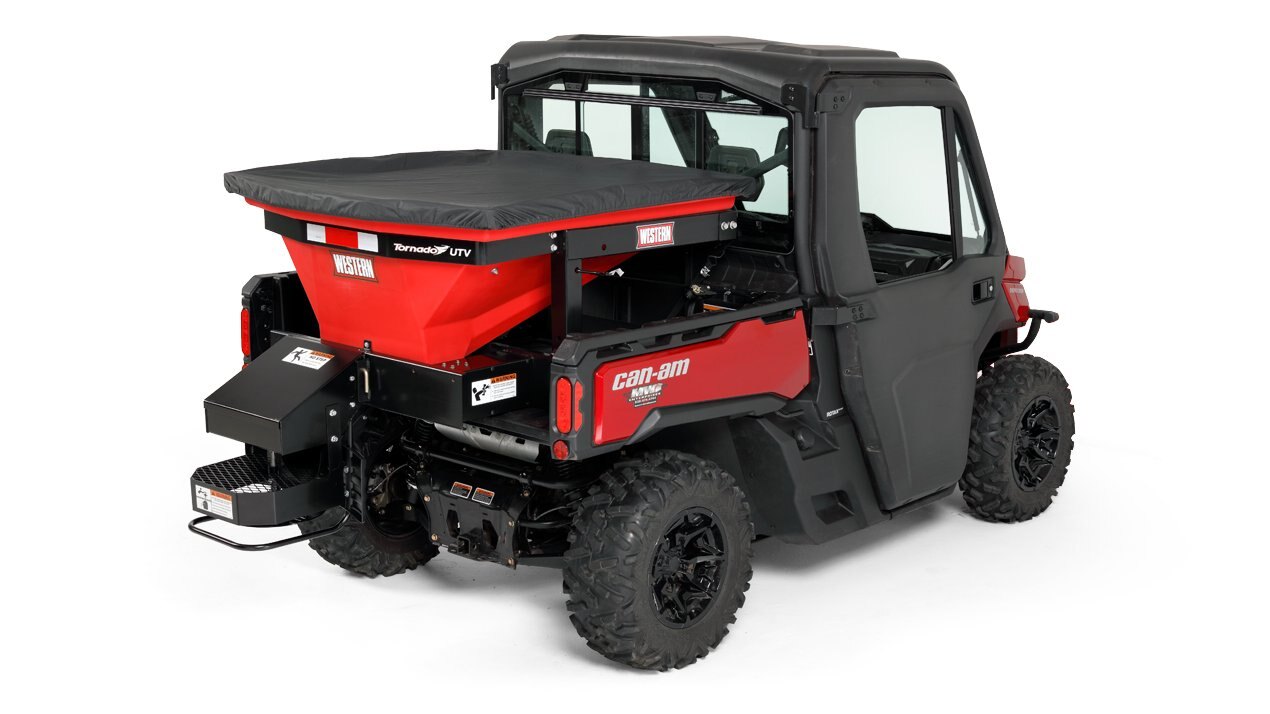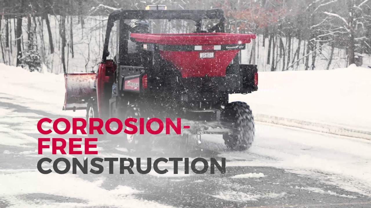 The standard coated steel top screen helps break up large chunks of de-icing material during the loading process to help prevent clogging and bridging during spreader operation. |