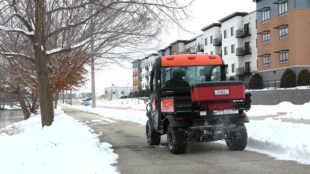 Giving you a whole new level of performance and control from one job to the next, the durable PRO-FLO™ 525 poly tailgate spreader is a premium option for de-icing sidewalks, driveways and other tight areas. That’s because it’s designed with a two-stage, auger-fed delivery system and dual variable-speed control that allows UTV operators to precisely match material delivery and spread patterns to conditions for unmatched consistency and unprecedented control.