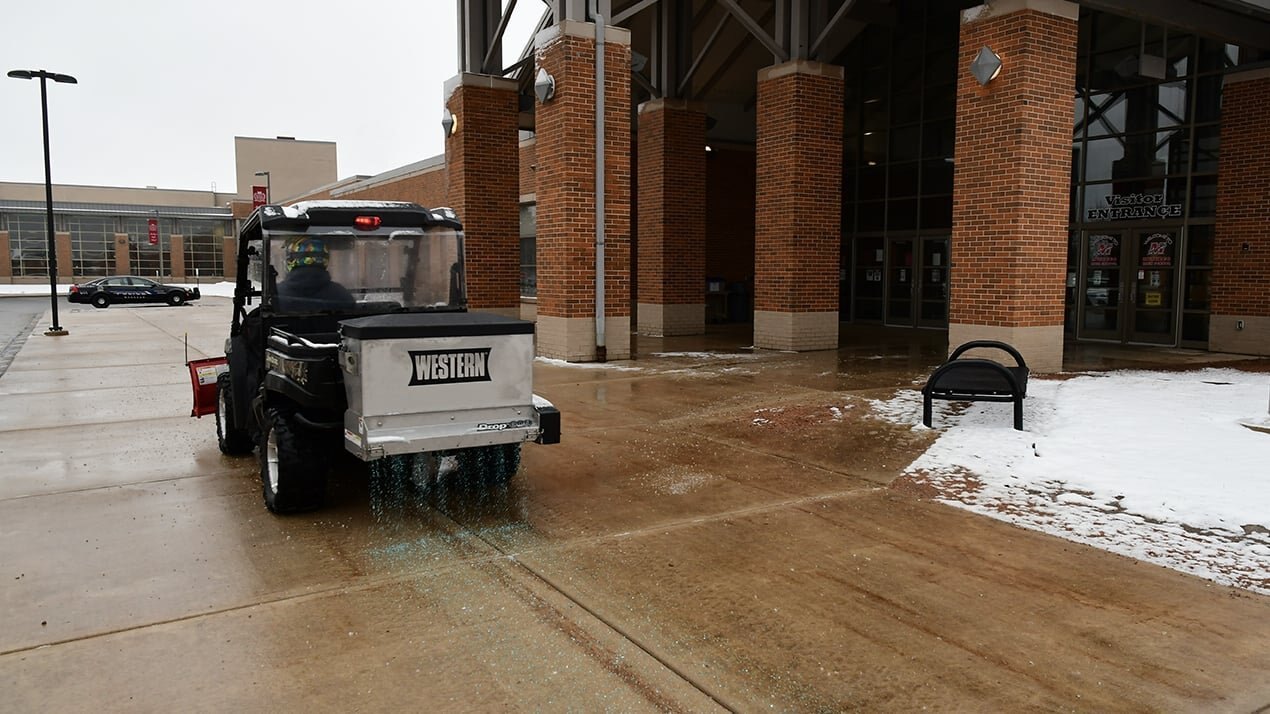 PLACE SALT EXACTLY WHERE IT’S NEEDED When precision is needed with salt placement, the new line of stainless steel drop spreaders from Western Products is the answer. The Drop 250 and Drop 600 spreaders provide up to 36″ of spread width in a drop pattern so the salt stays exactly where your vehicle drives. And with three mounting systems, these units can fit on most UTVs, compact tractors, or wheel loaders to make quick work of sidewalks, walking paths, and other paved surfaces where truck equipment can’t easily gain access. |