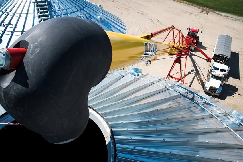 The new open discharge spout allows for a more efficient flow out of the tube moving grain quickly with up to 20% less power.