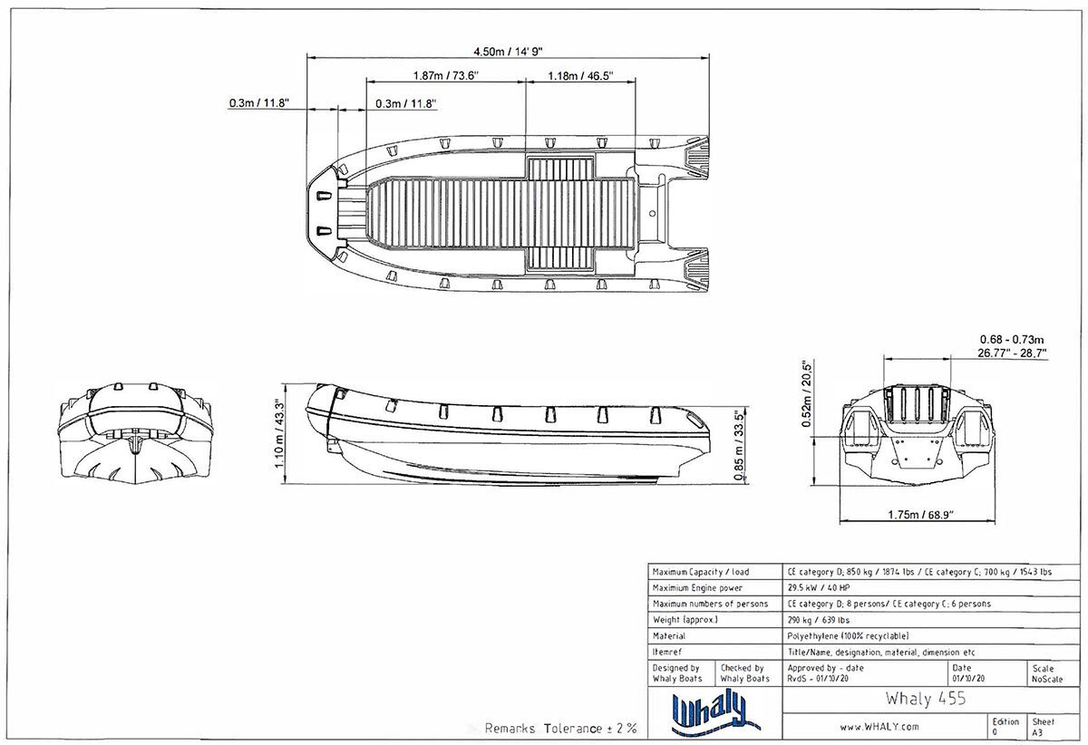 The Whaly 455 is a multi-use open boat made of high grade robust polyethylene. The design of the Whaly 455 is designed in the same line as the successfully Whaly 500 and also has the unique opening bow! The sporty design and effective navigation properties makes the Whaly 455 suitable for recreational and professional boaters.