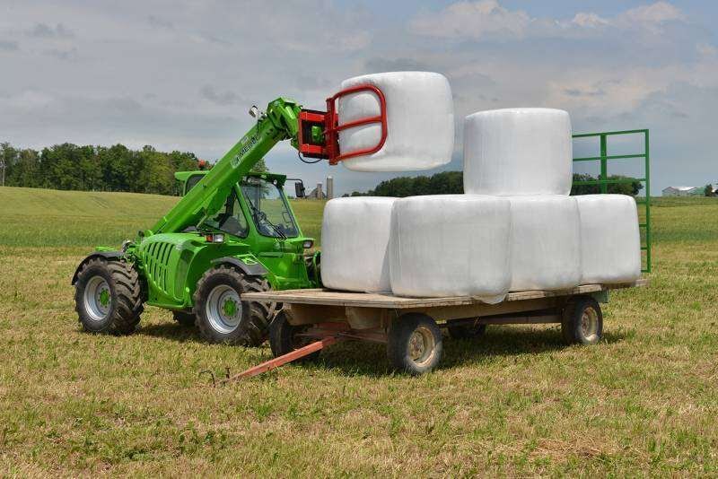 • Specially designed arms grasp a 3’ to 6’ bale firmly without damaging the plastic wrapping. • Designed to fit most standard front end loaders. • Easily adaptable to your quick-tach brackets (plate).