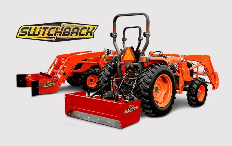 When the snow falls, the Switchback becomes a front mount snow pusher simply by bolting on the mount plate and removing the rippers and 3PH links.