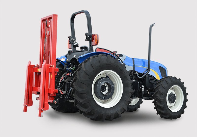 Forklift for 3-point hitch category I. Has a lifting capacity of 3500 lbs., a lift height of 110 inches and a retracted height of 91 inches. Comes with 1 chain.